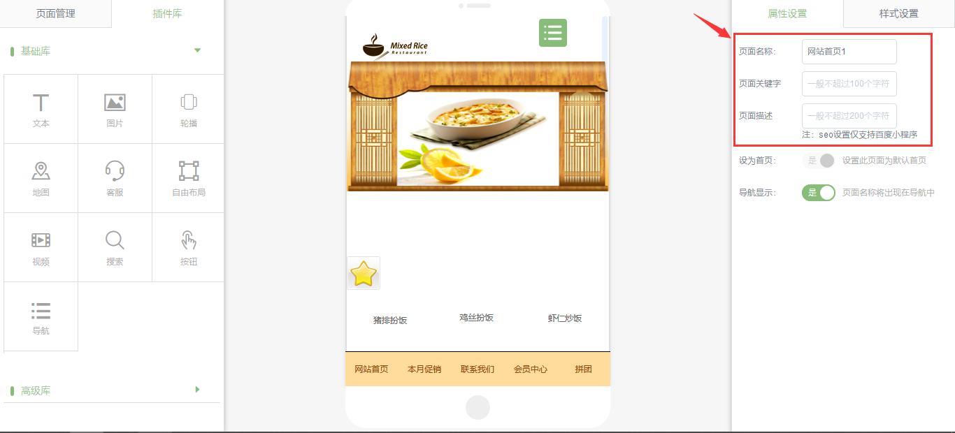 程序编辑器中,页面属性设置里增加了seo设置,如图所示: