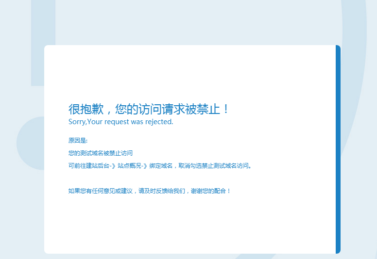 在网站后台-》点击绑定域名。然后勾选禁用测试域名即可